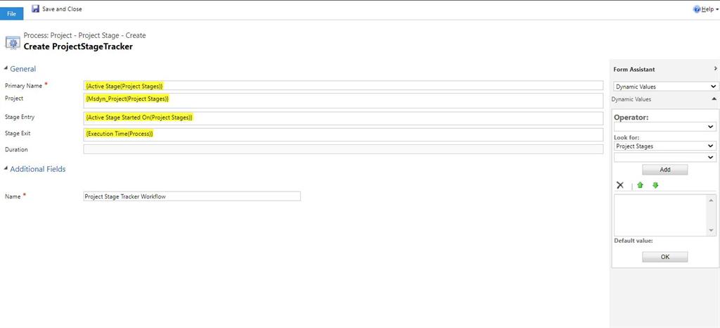 - Custom Entity to store Stage Entry, Stage Exit, Duration, Project, Primary Name all as roll up fields.