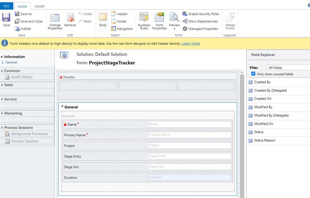 6.Keep all the above fields in a Form in the newly created entity as shown below