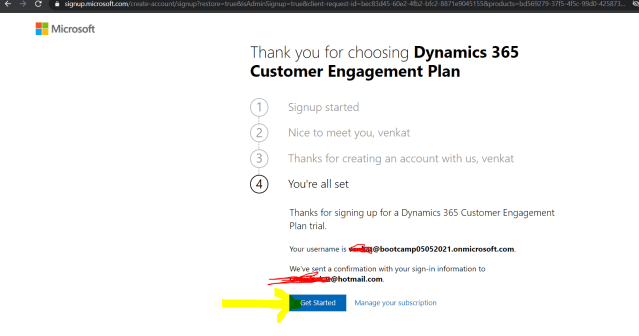11)If everything works fine you should see username gets created for the selected user id in the step 10 as shown below and click on Get Started button.
