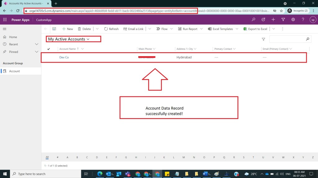 After Step 10, open CRM Environment in browser where data file was imported and you could see records gets created successfully as shown below .