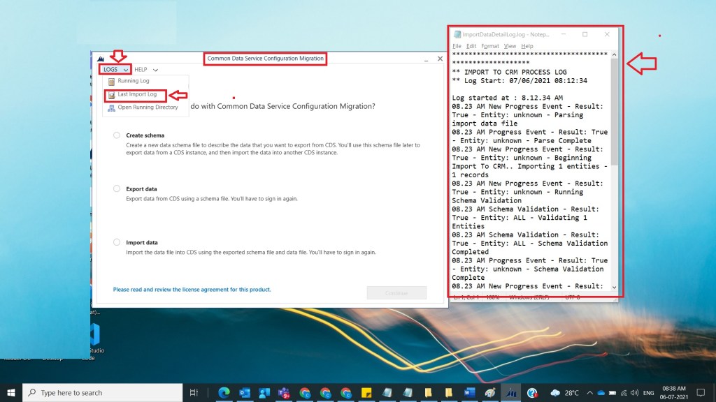 After Step 10, if you want to see log files then select Logs Option -> Last Imported Log and new text file with name ImportDataDetailLog.log open in a separate window as shown below.