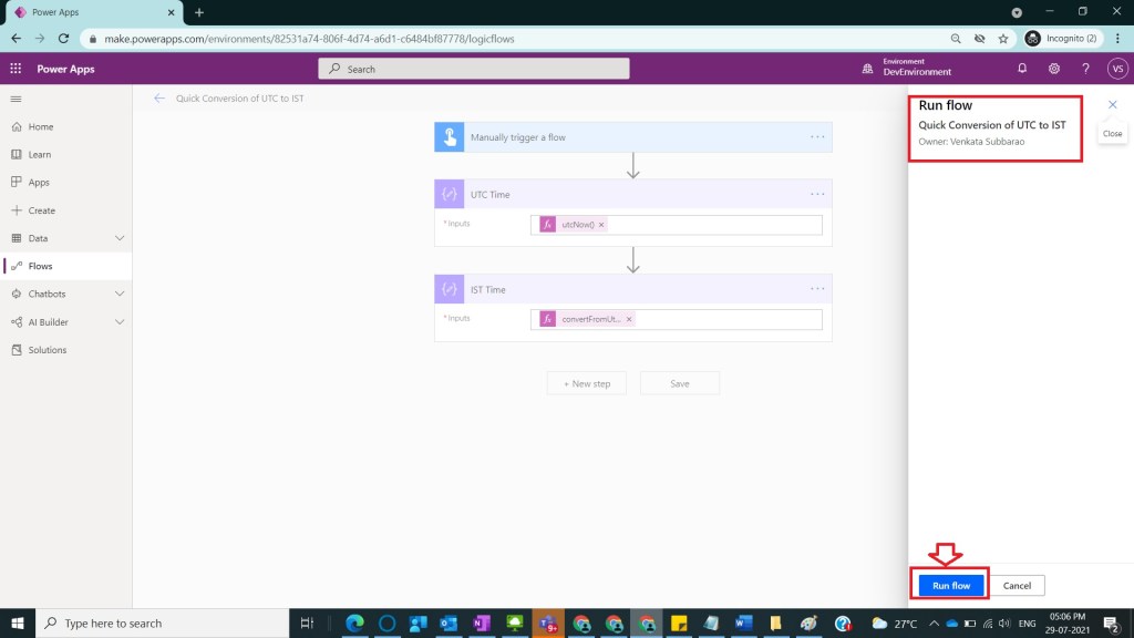 In Power Automate, functions plays an important role for conversions, in order to quickly see how to Convert UTC Time to IST Time we use Instant Cloud flow.