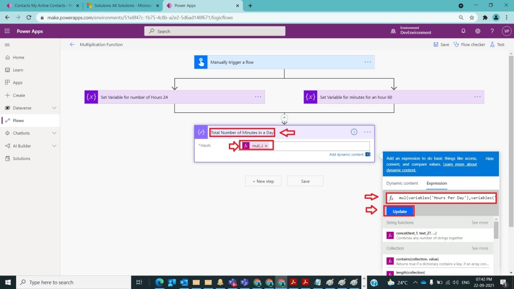 In Power Automate, at times we need to perform multiplication arithmetic operations so that we can get easily desired result. As an example, let us see how to calculate number of minutes in a Day with the help of multiplication function.