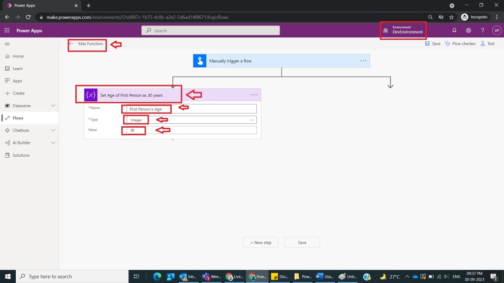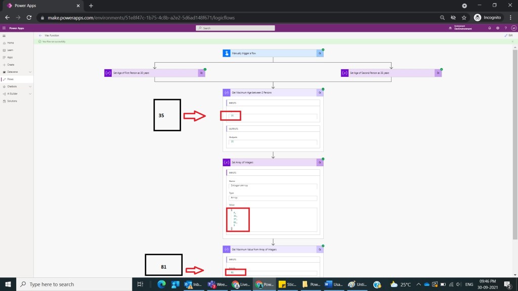 In Power Automate, at times we need to compare values Max Function is used so that we can get easily desired result. As an example, let us see how to get Maximum age of 2 persons as well as maximum value from a given array of integers with the help of Max function.