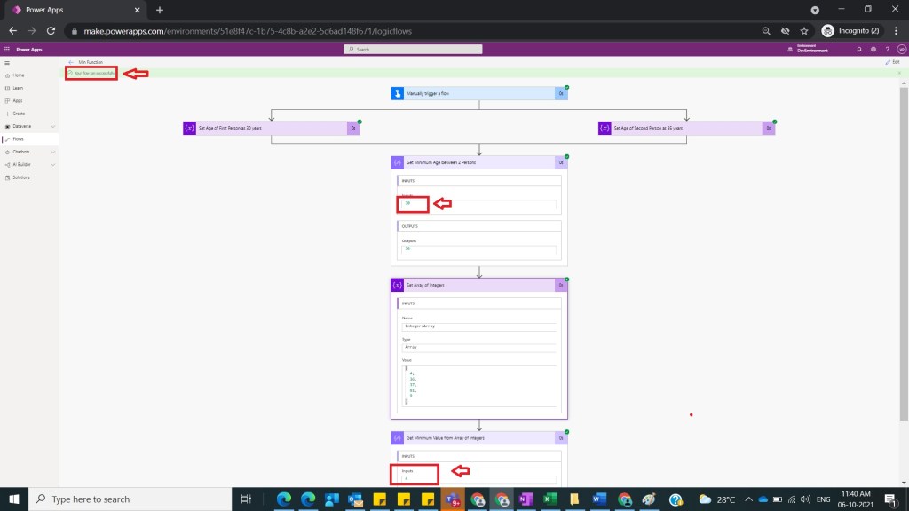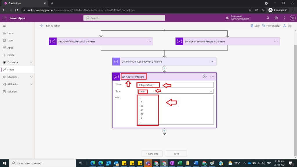 In Power Automate, at times we need to compare values Min Function is used so that we can get easily desired result. As an example, let us see how to get Minimum age of 2 persons as well as minimum value from a given array of integers with the help of Min function.