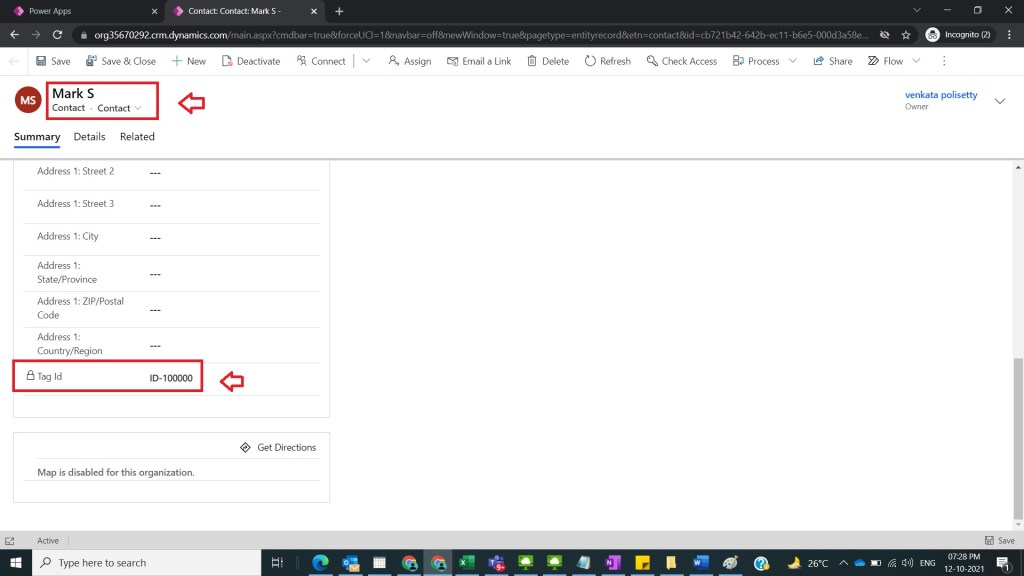 After Step 6, Go to Contact entity(table) and create new contact record and observe that Tag Id column is automatically populated as shown in the below figure