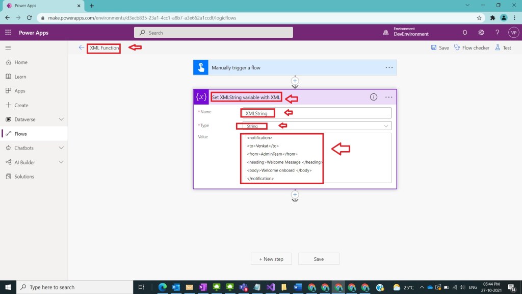 In Power Automate, at times we must work on strings which have XML values. We can use XML function in power automate to convert string value to XML and perform related operations. As an example, notification xml string is used here to send notification to required person.