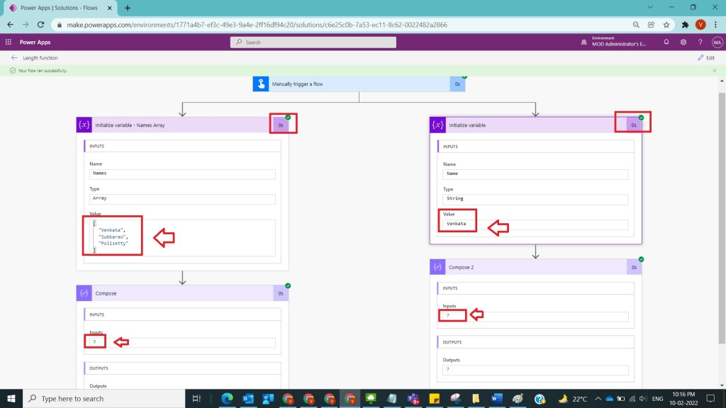 After Step 6,save and test the flow and observe the results as shown in the below figure.