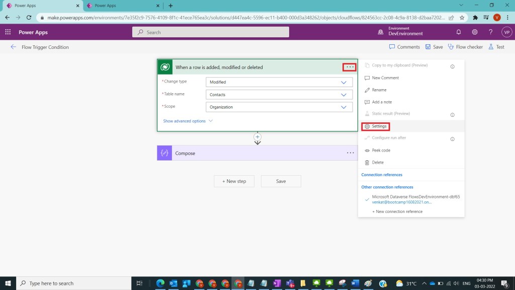 In Power Platform, at times we must take care of the number of flow runs per day based on API Limits so that we can run the flow only when it is needed. In Power automate this can be taken care by using Flow trigger condition available on trigger point of the flow.To explain this a basic automated flow was taken where on modification of any contact record if at all discount is equal to 50 then only I want my flow to run in all other cases flow should not be run.