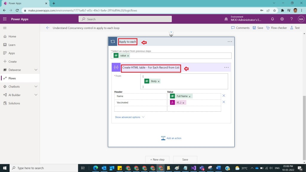 4. I have concentrated only to explain concurrency control in apply to each loop only not on creating html table.