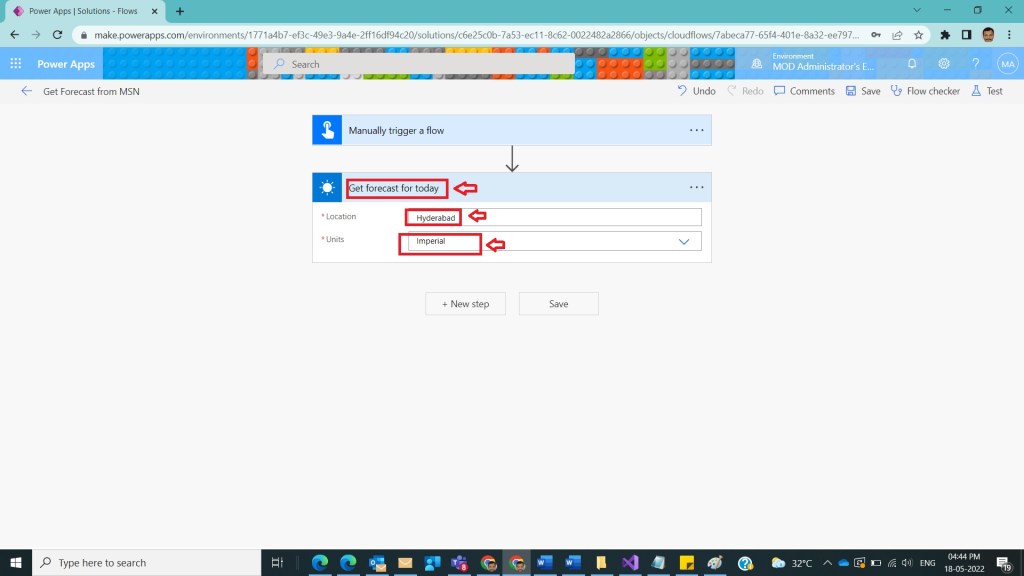 After Step 3 , take Get forecast for today Action as shown in the below figure.