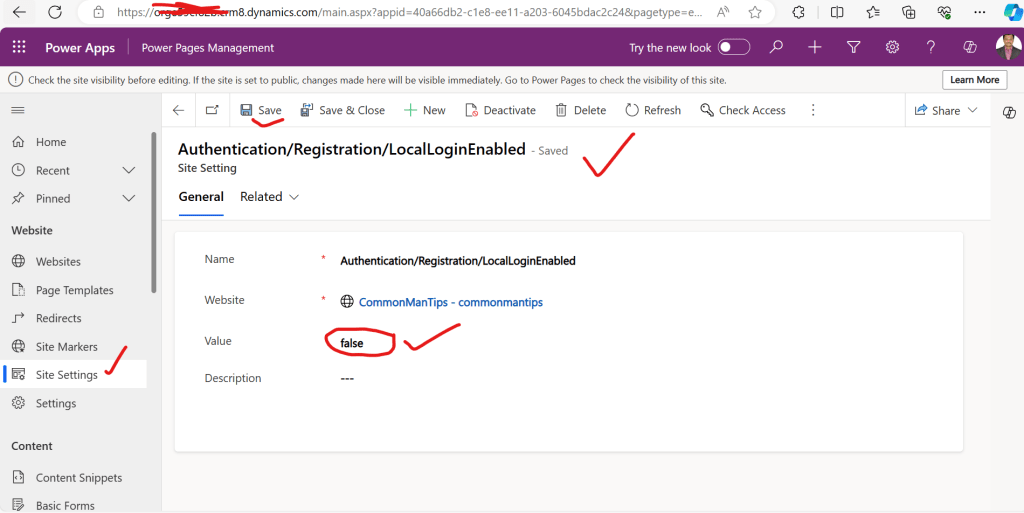 In Power Pages once development gets completed, local login should be disabled. Process of doing this is to modify Out of box record related to local login flag present in site settings table should be made as false. Entire process was explained below way