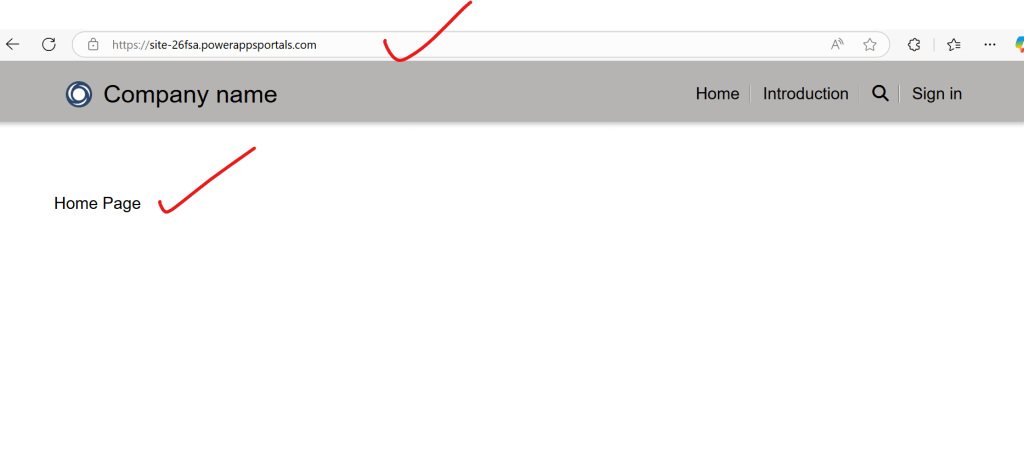You can observe an Introduction page gets displayed in the navigation pane and to the right side an empty page with company name in the header will be shown and then an option to choose a component to add to this section will be shown as below