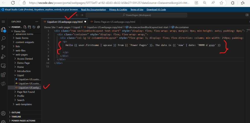 In this way one can easily use Liquid to generate dynamic content in Microsoft Power Pages either by directly writing on the web page or inside web template.
