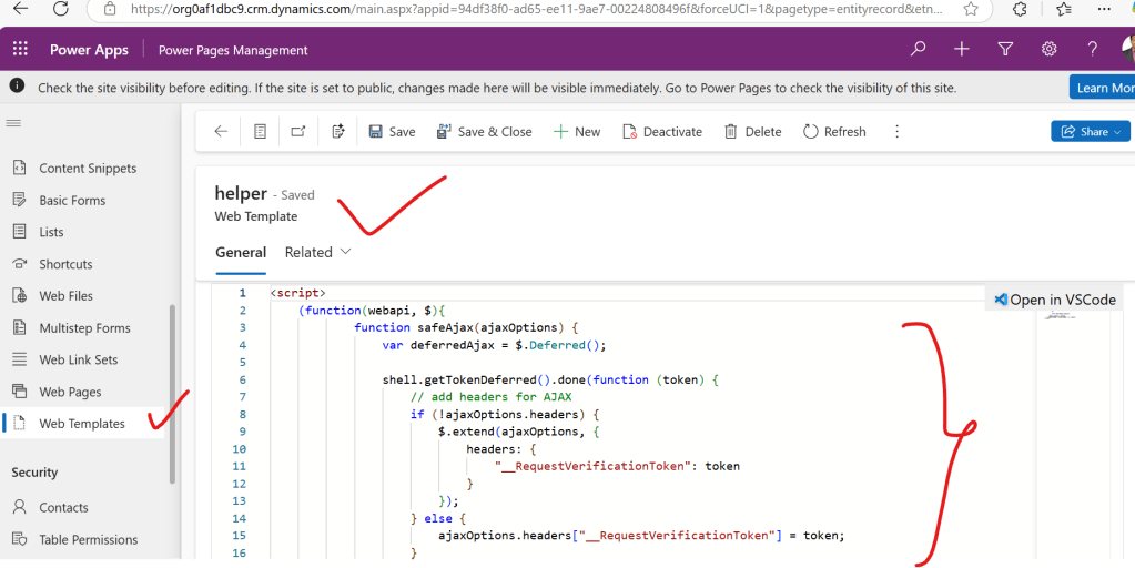 Step 3 : Now in order to include and generate security token for authentication Microsoft provided code snippet to be used in a webtemplate