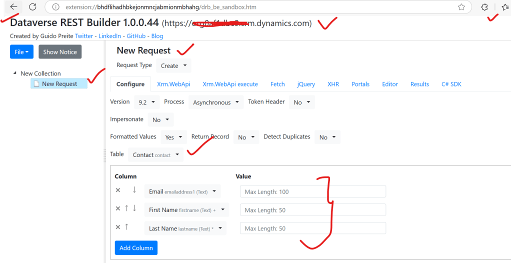 2.In the code to create dataverse record with webapi, we can use ready made code that is available by using dataverse restbuilder add on that was Created by Guido Preite as shown below