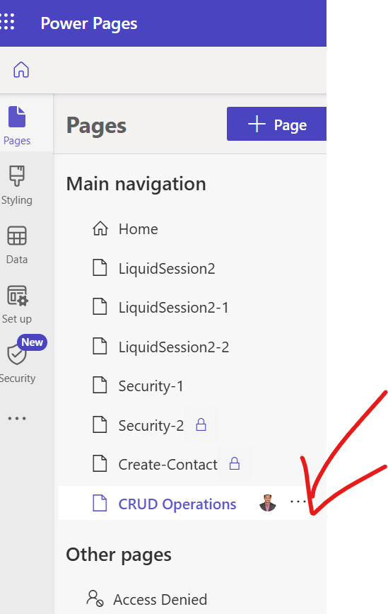 Step 1 : Go to Power Pages studio and add a new page and then provide the name as CRUD operations as shown below