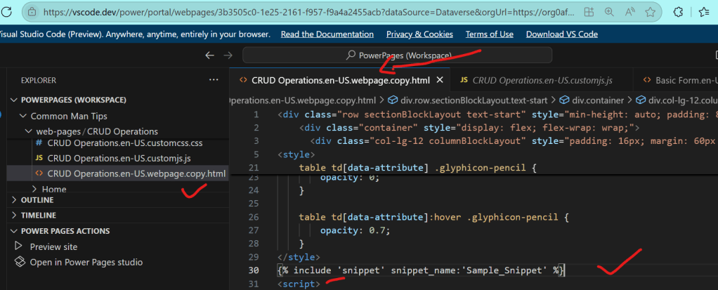 Step 5 : Now refer above created snippet in webpage by including below code in the webpage and publish it