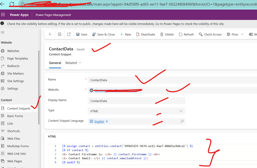 Step 1 : Go to Power Pages management app and create a content snippet Sample_Snippet as shown below