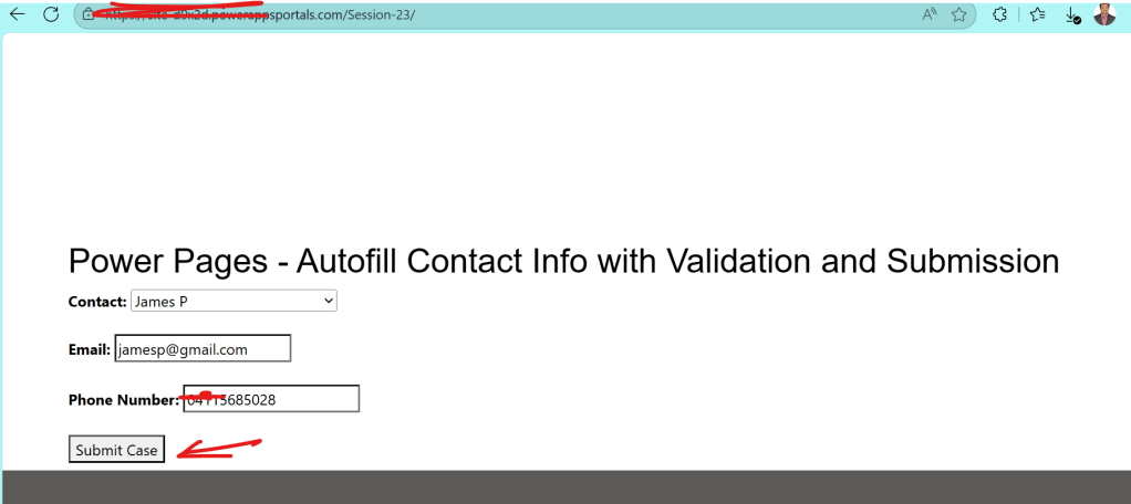 <h2>Power Pages - Autofill Contact Info with Validation and Submission</h2>